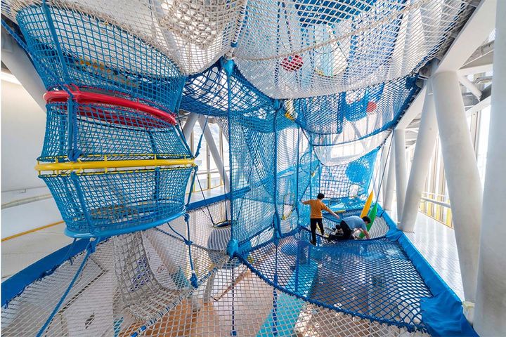 こども達の冒険心とイマジネーションをかきたてる「海峡こども広場」は、高さ10mの青いスロープネットの遊具空間が特徴的。※海峡こども広場のみ、1歳〜小学生まで。土日祝は40分の入れ替え制CHECK