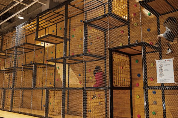 全身を使って楽しむ「スベリほう台」の隣には、「ボルダリングレーン」も設置されている。※無料