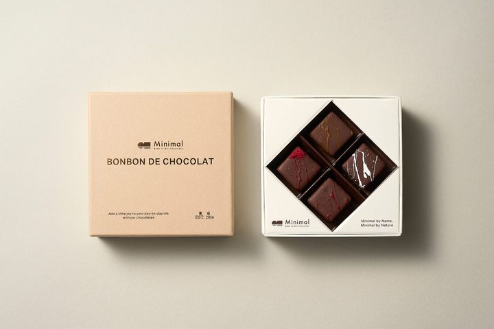 C.C.C.で金賞を受賞した、日本各地の柑橘を使ったボンボンショコラ4粒アソート。温州みかん・すだち・柚子に、それらを引き立てる和ハッカ・ヘーゼルナツ・よもぎと、産地も厳選したチョコレートを合わせ、それぞれの味や香りも感じられる繊細さ。日本最古の柑橘「大和橘」のガナッシュにパートドフリュイを挟んだ1粒は必食!
