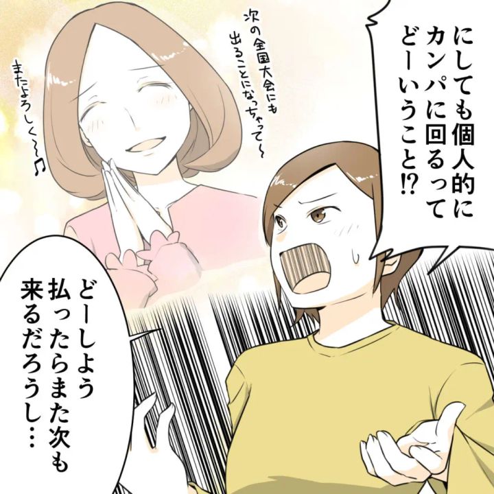 勝手な寄付金、それも娘を応援に行くための旅費にするであろうことが見え見えの道理に合わないことをしているにもかかわらず、断られたら根も葉もない嫌味を言いだすハルちゃんママ。早く帰ってほしいです。