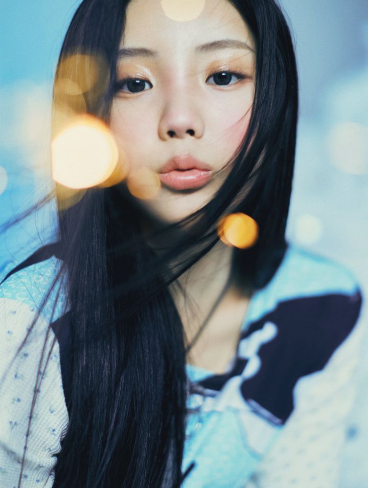 透き通るような美肌とみずみずしいリップが、ミンジュの甘く儚いビジュアルを最大限に引き出して。