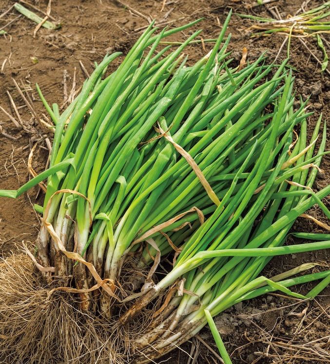 「法性寺ねぎはものすごい勢いで分げつ(新しい茎が分かれて出てくること)するため、放っておくと本数が増えて、一本一本が細く小さくなってしまいます。そこで三回の植え替えをすることで、分げつを適度に抑え、丈を伸ばして茎葉も太く育てるんです」