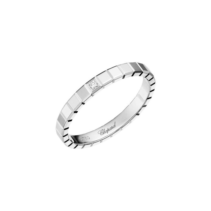 小さな氷のキューブからインスピレーションを得た幾何学的なデザインに、一粒のダイヤモンドが輝くこのリングなら、流行に左右されないクールな雰囲気を醸し出してくれる。