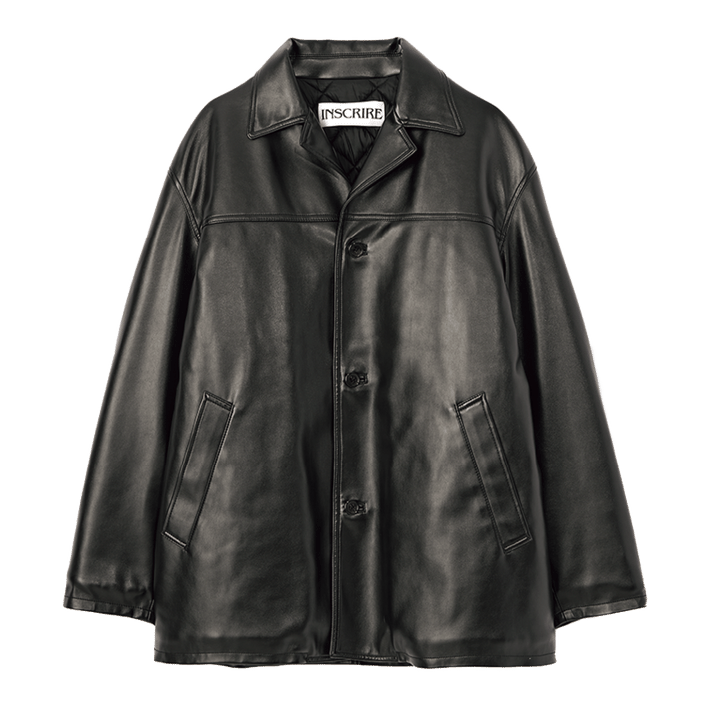 今季らしいオーバーサイズのレザージャケットは中綿入りで暖かさも◎。レザージャケット¥97,900(アンスクリア/アマン)
