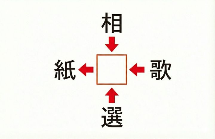 ルールはシンプル。中央の空欄(□)に漢字を1文字入れて、上下左右にある4つの漢字と組み合わせて、それぞれ二字熟語を完成させてください。