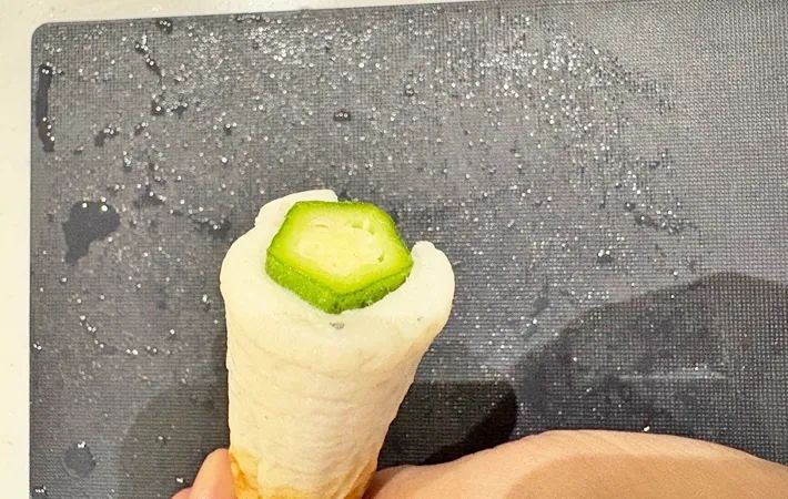 2.オクラをちくわに詰める