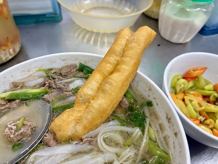 揚げパン「クアイ」も一緒に注文し、スープに浸しながらいただきました。サクッとした食感を味わうのも、スープに浸してじゅわっと楽しむのもおすすめです。ステンレスのテーブルの上で、肩をひしめき合いながら食べるハノイのフォーに、今日を生きる活力をもらった気がします。