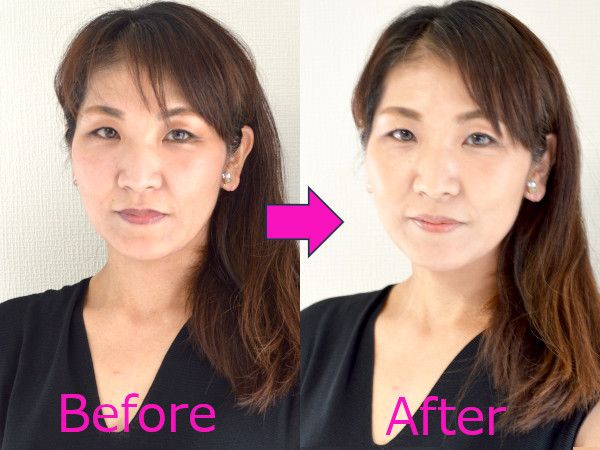 いつもは下地などで肌のツヤ感を上げ、アイラインを強めに引いて華やかさを出していますが、似合う色でメイクすると、ナチュラルさのなかに華やぎのある品のある印象になり、若々しく見えます。