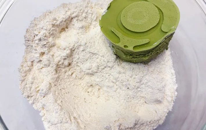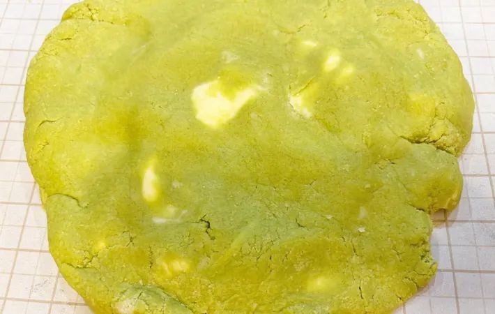 生地を塊にまとめたら、2cmくらいの厚さに伸ばし、成形します。