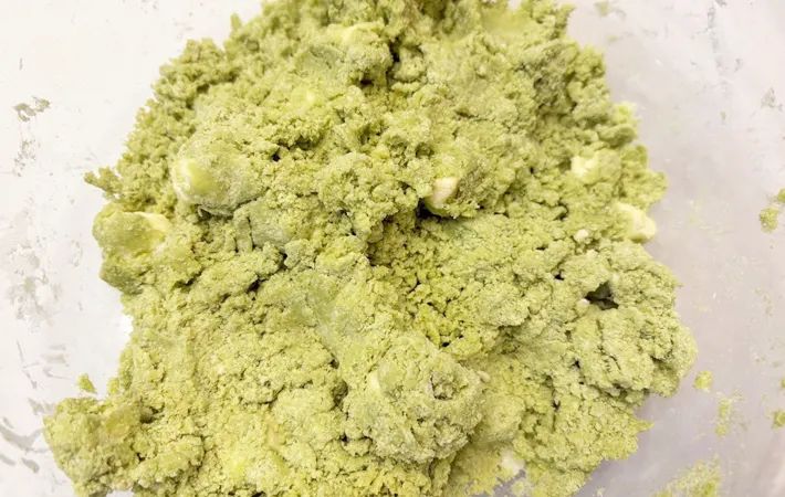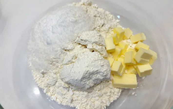 バターは、1cm角くらいに切ってから混ぜてください。