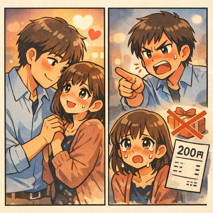 「200円だけど、割り勘ね」と細かい買い物まで割り勘をねだったり、クリスマスプレゼントを私にくれないのに、要求だけしてきたり…