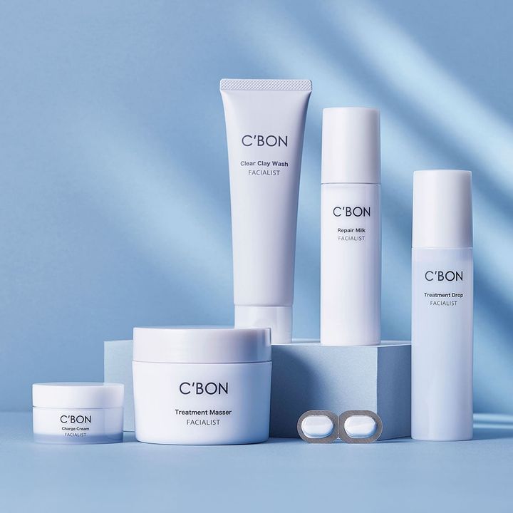 左から時計回りに:フェイシャリスト チャージクリーム<クリーム>30g ¥9,350、同 トリートメントマセa<クレンジング&マッサージクリーム>230g ¥11,000、同 クリアクレイウォッシュ<洗顔料>130g ¥5,500、同 リペアミルク<美容乳液>100ml ¥6,600、同 トリートメントドロップ<化粧液>120ml ¥7,150、同 ファーメントパウダーa<酵素洗顔料>0.3g×56ピース ¥11,000
