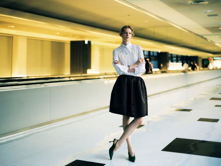 クリーンなシャツと、揺れるボリュームスカートの相反するムードが新鮮。シャツ¥121,000/シャルべ フォーブラミンク(ブラミンク トーキョー) スカート¥110,000/ジュンワイ シューズ¥207,900/ロジェ ヴィヴィエ(<a href="https://www.rogervivier.com/jp-ja/home/" target="_blank">ロジェ・ヴィヴィエ・ジャパン</a>) Hearst Owned