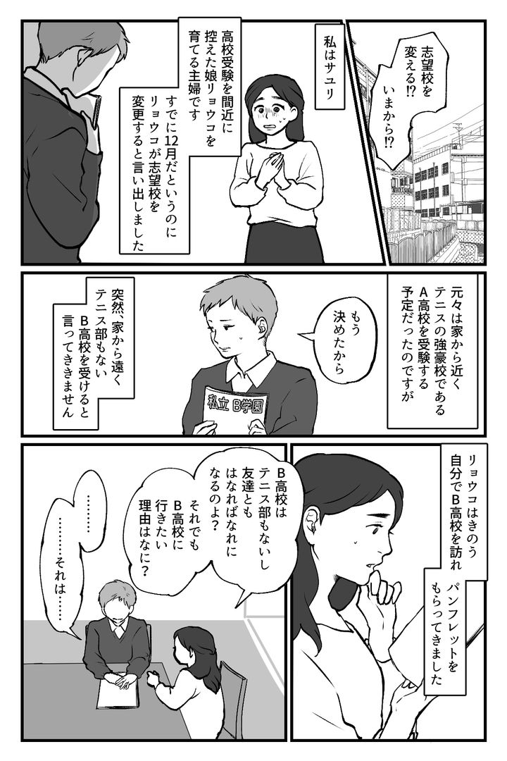 リョウコが、家から遠いうえに中学で活躍していたテニス部のない高校を、第一志望にしたいと言い出したのです。そのときすぐにはリョウコの選択を受け入れることはできませんでしたが、親子で話し合いを重ねました。
