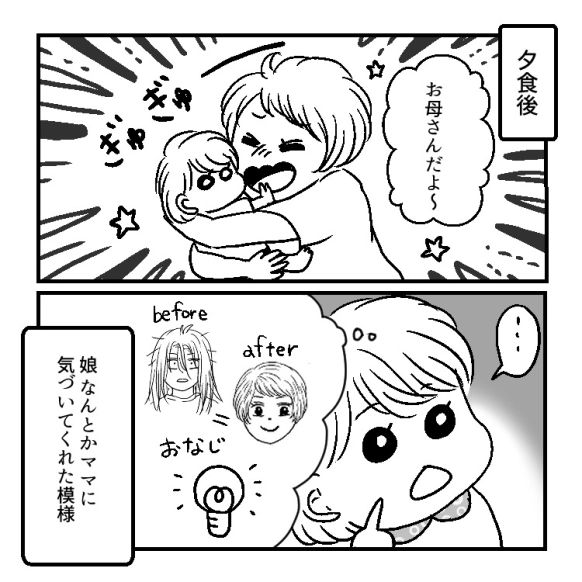 娘を驚かせてしまったイメチェンですが、なんと保育園の先生たちからは大好評でした。たまには思い切って髪型を変えてみるのも良いかもしれませんね!