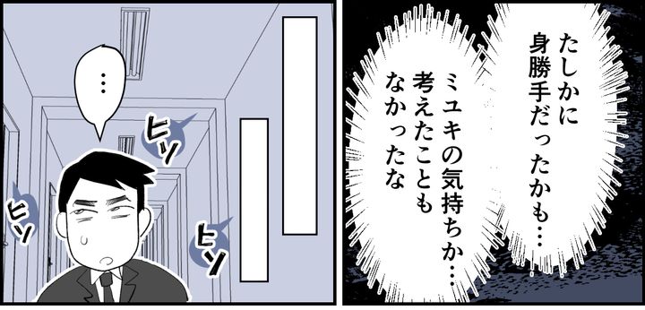ミユキのブログに寄せられた、俺に対するたくさんの非難のコメントを見て、俺はうなだれるしかなかった。たしかに身勝手だった……。ミユキの言葉を何も聞いてなかったと痛感した。自分の言動がミユキを追い詰めていたことを自覚し、後悔の念に襲われた。