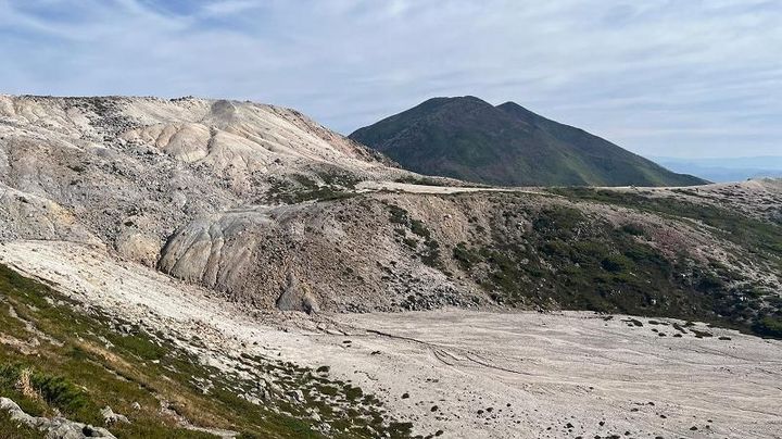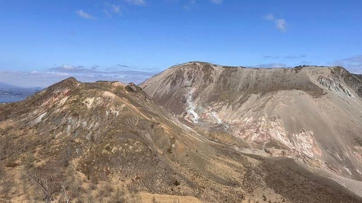 またイワオヌプリは火山で、山頂付近の白色化した景色が特徴的です。