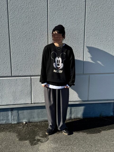 キャラクターが入ったロゴスウェットを大人っぽく着こなすには?