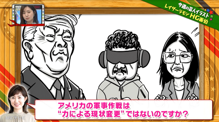 なお、トランプ政権のベネズエラ軍事作戦は、1月10日に生放送された情報バラエティ番組『教えて!ニュースライブ 正義のミカタ』(ABCテレビ)で取り上げられた。