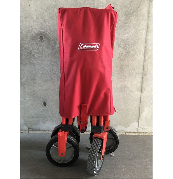 実際、テントサイトと駐車場が離れたキャンプ場で、でこぼこした坂道をこのワゴンで数往復しながら荷物を運んだことがありますが、とてもタフで、素手ではとても運びきれない量と重さの荷物を運搬することができました。多少の悪路でも、前後に人がついて押したり引いたりすることができれば、活躍することは間違いなしです。