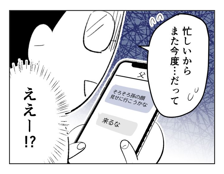 義両親とお嫁さんの仲が微妙……そんなご家庭であっても、孫の誕生は義両親にとってきっと嬉しいもの。「孫のかわいさは格別」ですよね! しかし関係がこじれてしまい、「孫には会いたくない」と言われてしまったら……!? あなたならその言葉を受け入れて距離を置きますか? それとも子どものために、関係修復をはかりますか?