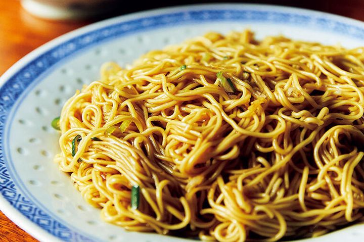 四ツ谷の路地裏で長きにわたり愛され続ける広東料理店。作家・開高健をはじめ多くの文化人に愛された歴史を持つ。麺のほかにはねぎと生姜のみという潔さのカキソース和えそばは、細麺ながらコシが強く、オイスターソースと醤油が香るシンプルなタレがからみつく。一度食べたら忘れられない、中毒性のある傑作麺だ。