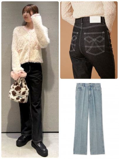 リボンステッチセミフレアデニムパンツ/FURFUR