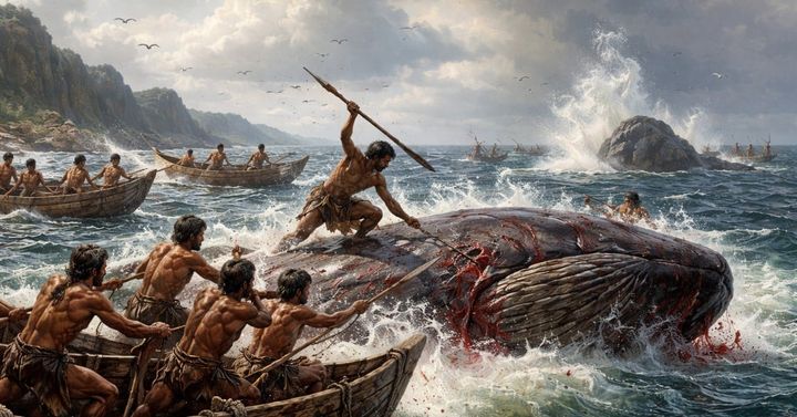 世界最古の銛、「5000年前の捕鯨」の証拠を発見。イメージ / Credit:Generated by OpenAI’s DALL·E,ナゾロジー編集部