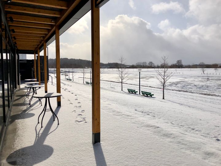 夏には青々とした芝生と、ガーデンの象徴ともいえる鏡池がきらめき、冬には一面の雪景色(写真)が広がるなど、季節ごとにまったく異なる表情を見せてくれるのもこの店舗ならでは。