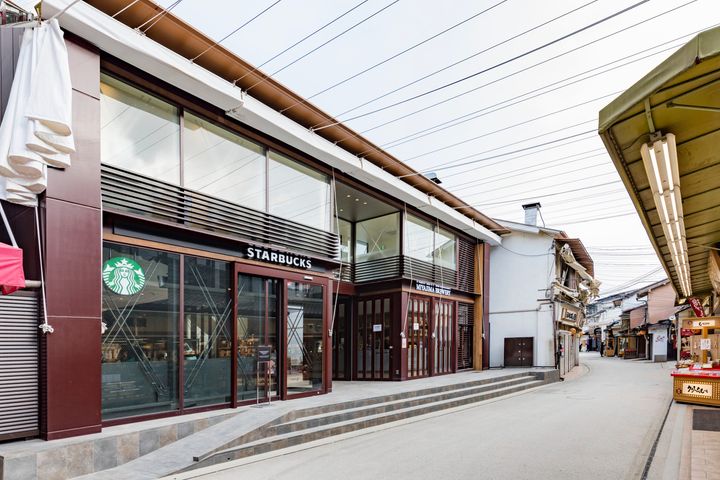 世界文化遺産「嚴島神社」へと続く表参道商店街に位置する「スターバックス コーヒー 厳島表参道店」は、日本で初めての“船で訪れる”スターバックスとしても知られる特別な一軒。