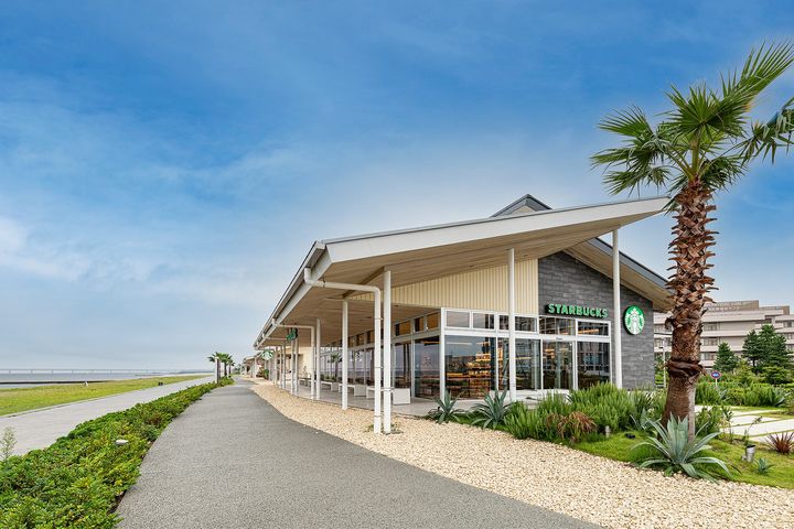 2020年7月、泉南マーブルビーチとタルイサザンビーチに沿って誕生した大型レジャースポット「泉南りんくう公園」。スポーツや食、レジャーを一体で楽しめるこのエリアに位置するのが、「スターバックス コーヒー 泉南りんくう公園店」だ。大阪府内のスターバックスでは限られた、海を望みながらコーヒーを楽しめる店舗で、まるでリゾート地を訪れたかのような、開放感あふれる景色が魅力。