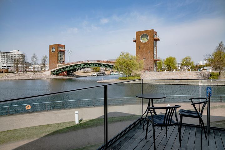 公園内には芝生や遊歩道が広がり、家族連れや愛犬との散歩を楽しむ人々の姿も見られ、店内のどの席からも、公園のシンボルである「天門橋」や運河の風景を楽しむことができる。時間帯や季節によって移ろう風景とともに過ごすひとときは、この場所ならではの贅沢な体験だ。