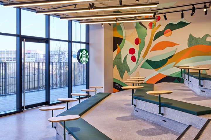 2025年3月、大阪・うめきた2期エリアに誕生した「スターバックス コーヒー うめきたグリーンプレイス店」は、整備が進むうめきたエリアの玄関口、JR大阪駅と直結の商業施設「うめきたグリーンプレイス」の2階に位置する。