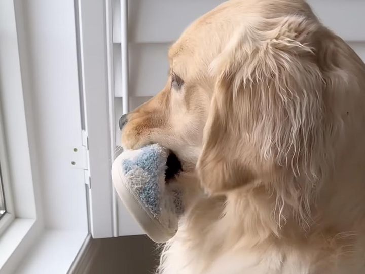 3. 帰宅時間になると外を見に行って 「もうすぐかなぁ?」パパ待ちゴールデンの可愛い行動