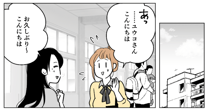 後日、学校の授業参観で教室に向かっている途中、ユウコさんと会いました。