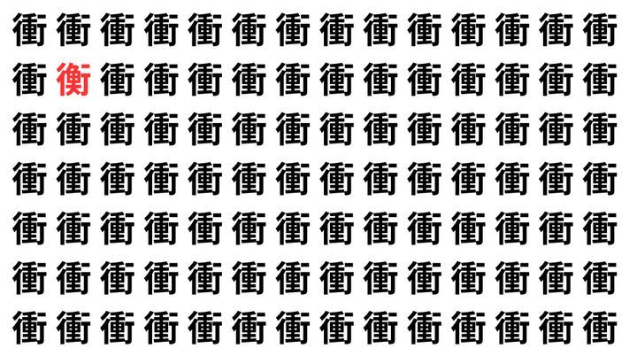 たくさんの「衝」の中に、よく似た別の漢字が1文字だけ隠れています。