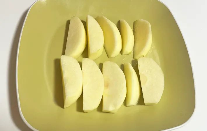 リンゴは皮を剥いて、芯を取り除き、10等分程度にカットします。