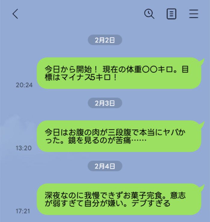 そこで、ブロックされているその友人のチャット欄を、秘密の「ダイエット日記」として活用することにしました。