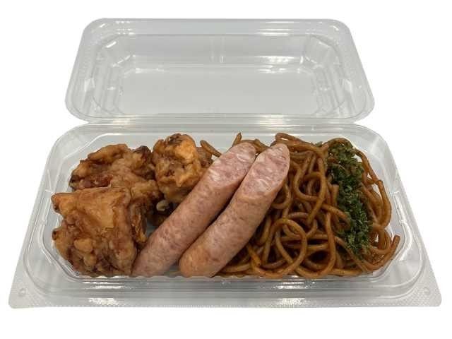 鶏唐揚げとソーセージに、相性の良いソース焼きそばを組み合わせた惣菜の盛り合わせです。 カロリー:417kcal 【販売地域】北陸