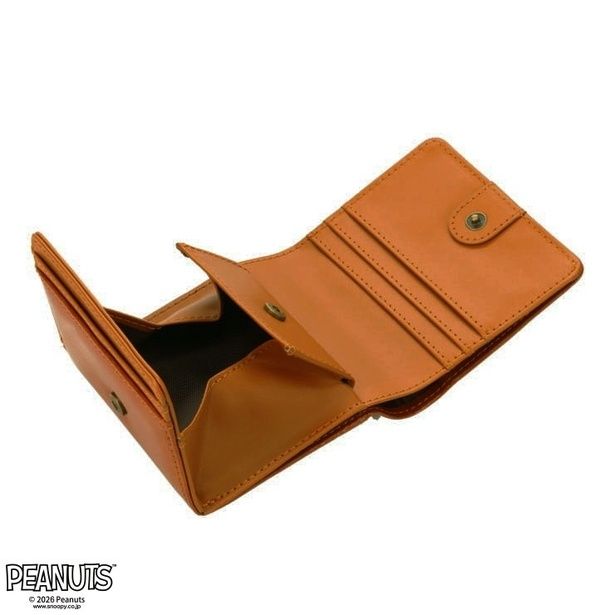 BOX型の折りたたみ財布は、小銭が取り出しやすい形状が特徴。スヌーピーとウッドストック、お花があしらわれたほっこりデザインで、開けるたびに癒やされそう。縦9×横10×マチ1センチの手のひらサイズで、ミニバッグにもすっぽり収まる。