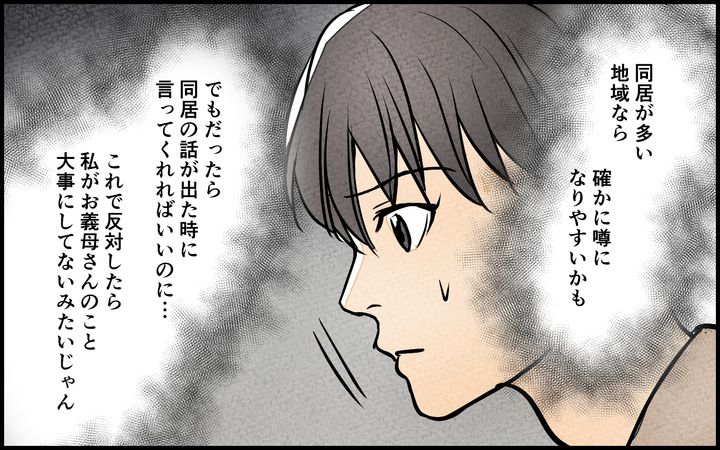 後出しのように同居が多い地域であることを話すお義母さん。
