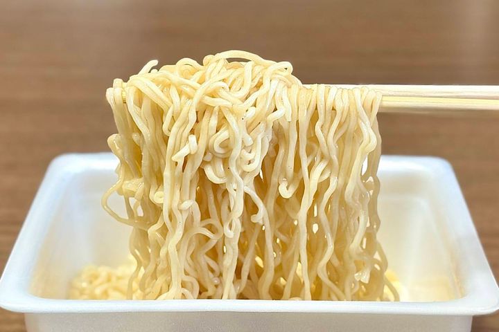 熱湯を注いで3分待ったあと、湯切りをしてソース&ふりかけをかけると完成。