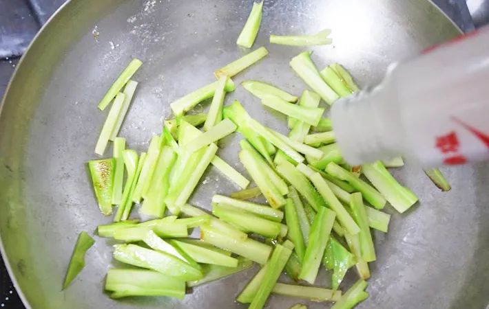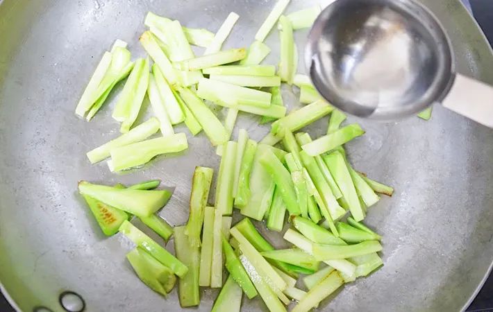 切ったブロッコリーの芯を入れ、2〜3分炒めましょう。
