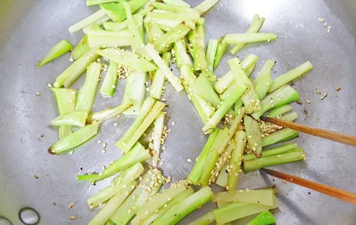火を止め、ゴマを入れて全体にさっと絡めます。