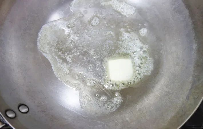 フライパンにバターを入れて中火で熱します。