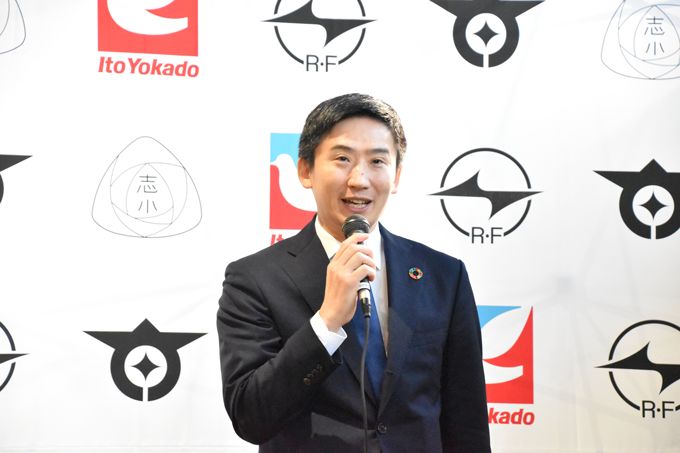 鈴木区長は、たこぺったんそばを販売開始となる一足先に食べてみたと言い「一口で“美味い!”」と大絶賛。この取り組みを通じて「より多くの方に知ってもらう機会となります。皆さんにもぜひ味わってほしいと思っています。たこぺったんをイトーヨーカドーで買って帰り、夕食で家族団らんを囲んで食べてもらえたら。寒い朝は駅までダッシュしてもらい、たこぺったんそばを胃袋にかき込んでもらって、1日の活力にてほしいと思います」とアピールした。