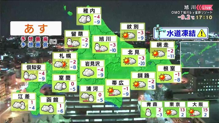 背景は14日午後5時ごろの旭川情報カメラ