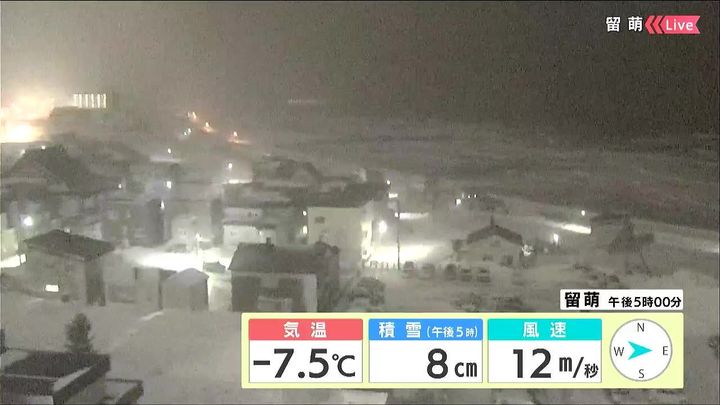 背景は14日午後5時ごろの留萌情報カメラ