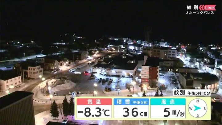 背景は14日午後5時ごろの紋別情報カメラ