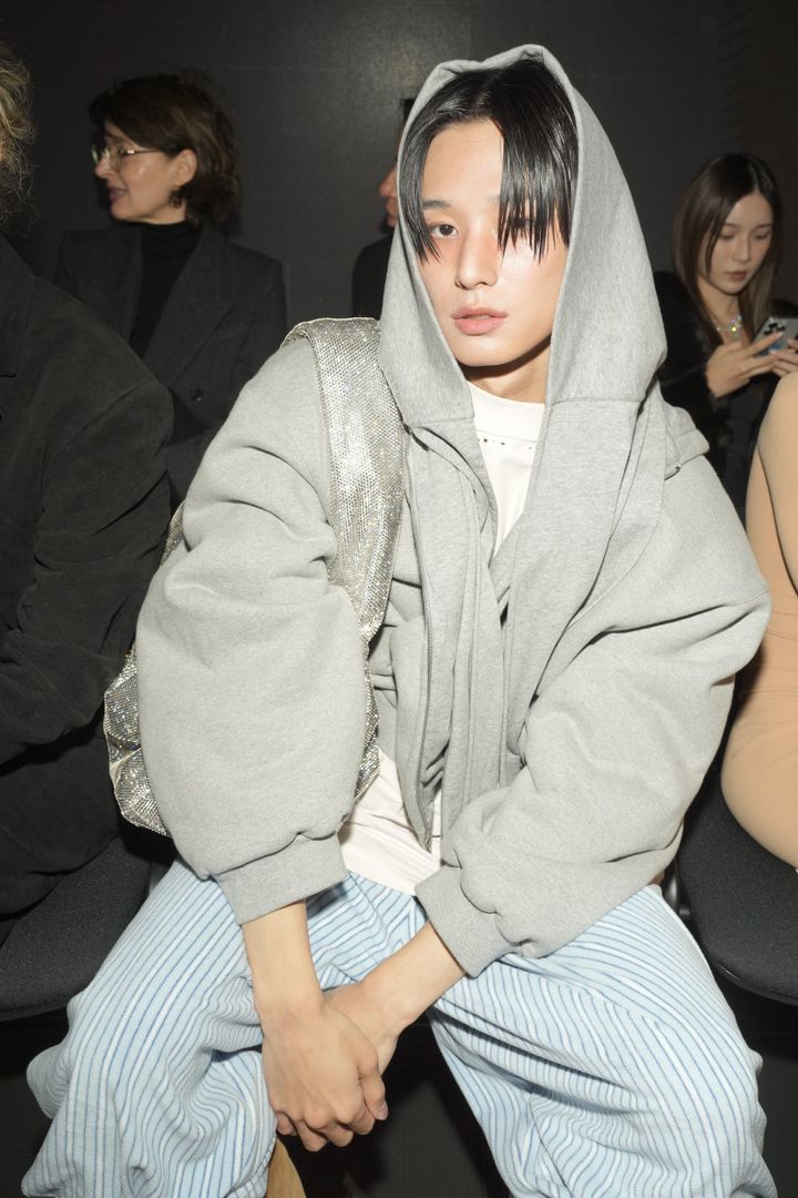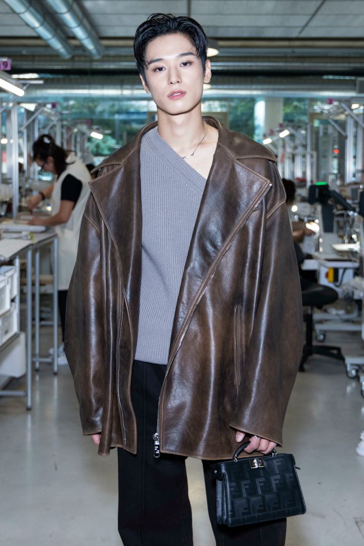 「フェンディ」2024SSメンズコレクションのフロントロウでは、ちらりと覗く美しい鎖骨でファンを悩殺! 上まぶたに存在するホクロさえも尊く見えてしまう、アンニュイな表情に目が釘付け。